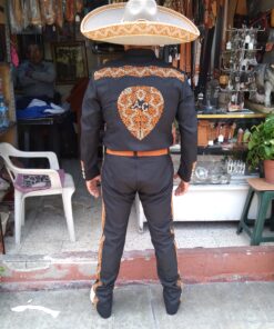 Traje de pachuqueña y pantalón con grecas